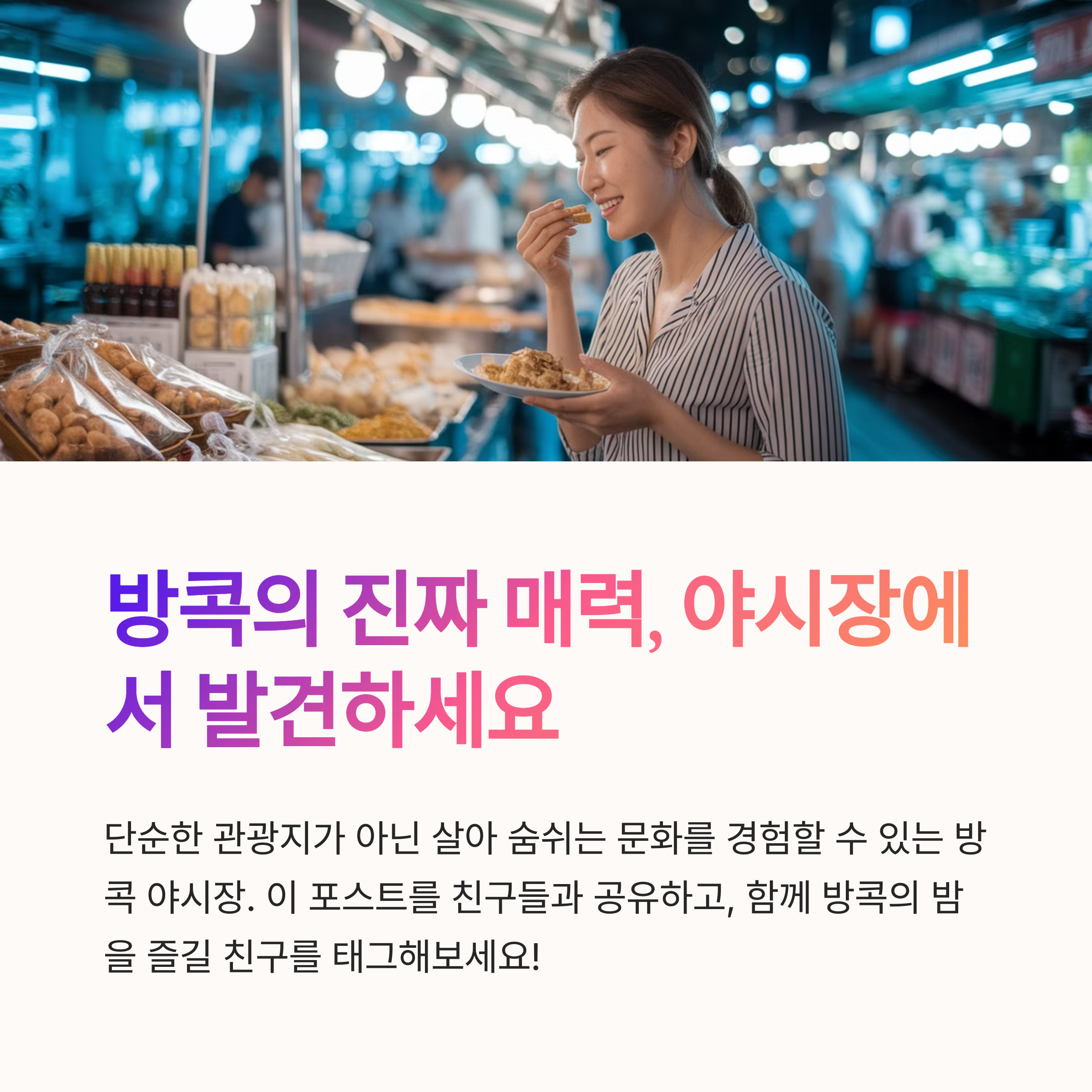 | 방콕 야시장 종류 | 유명 야시장부터 현지인 전용까지 다양하게 분포되어 있습니다. |